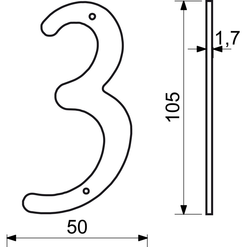 Aluminijovska številka v ravnem "2D" izvedbi "3"