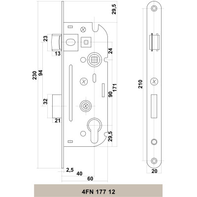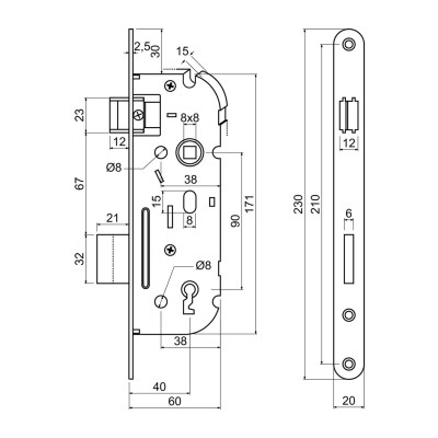 Vgradna ključavnica V80/90/50 na vložek