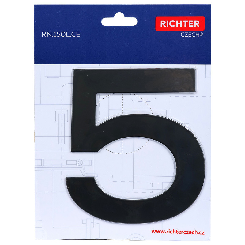 RN.150L.5.CE številka "5" 150 mm črna mat