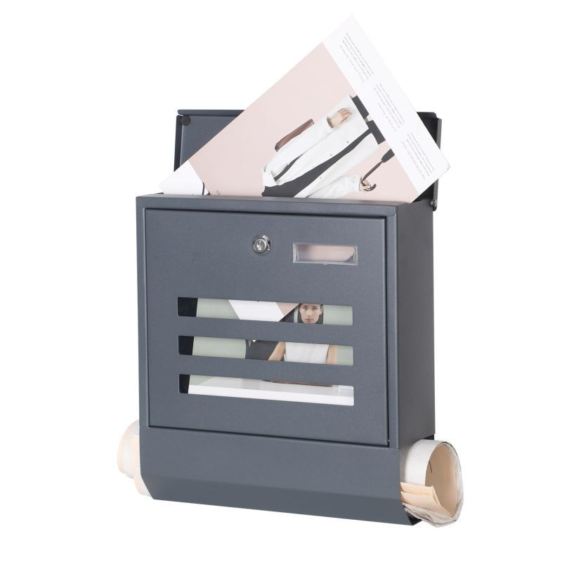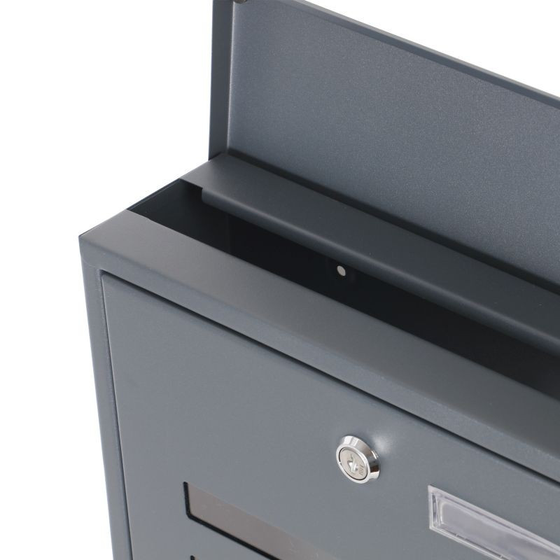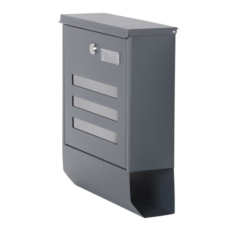 Kakovostno poštno nabiralnik iz jeklene pločevine v antracitnem odtenku. Uporabnikom zagotavlja udobje zahvaljujoč 3 oblikovanim podolžnim oknom z možnostjo pogleda v notranjost nabiralnika. Ta funkcija omogoča preverjanje vsebine nabiralnika brez potrebe po vsakokratnem odpiranju. Preprosto preverite sprednji del in ne pozabite prevzeti svoje pošte. Nabiralnik je opremljen s spodnjim cevnim vložkom za časopise in letake (pogosto natisnjene v večjem formatu).