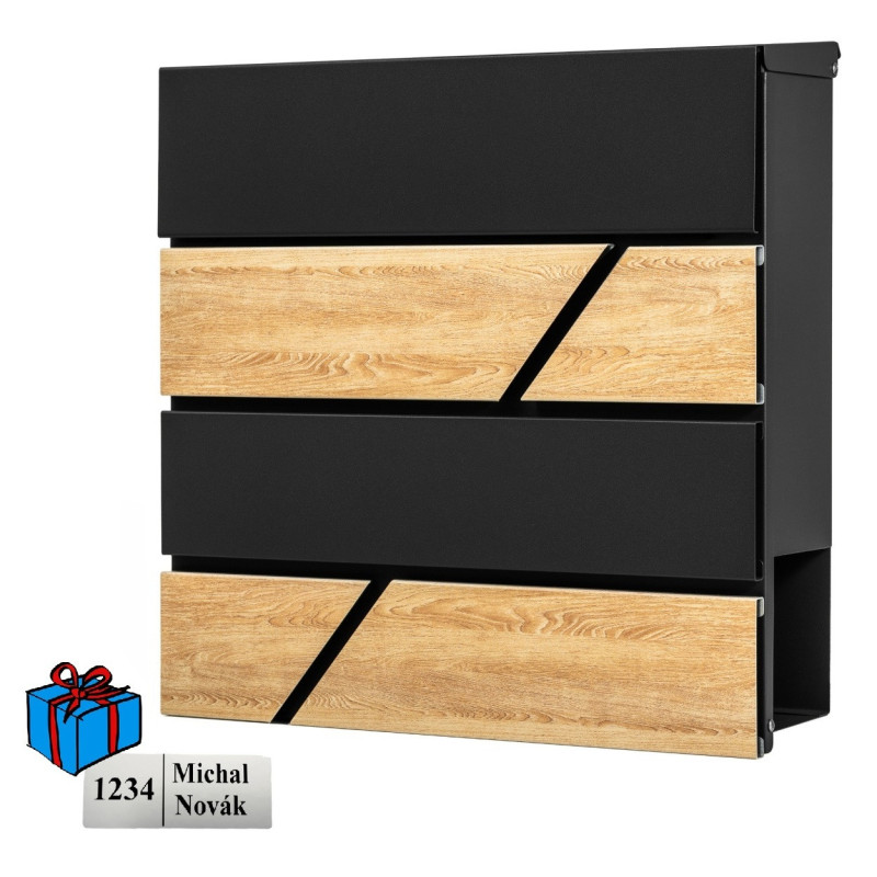 D3638 poštová schránka čierna + imit. dreva