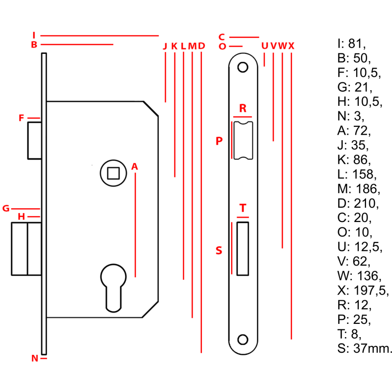 Zaklepna ključavnica 081 na vložek