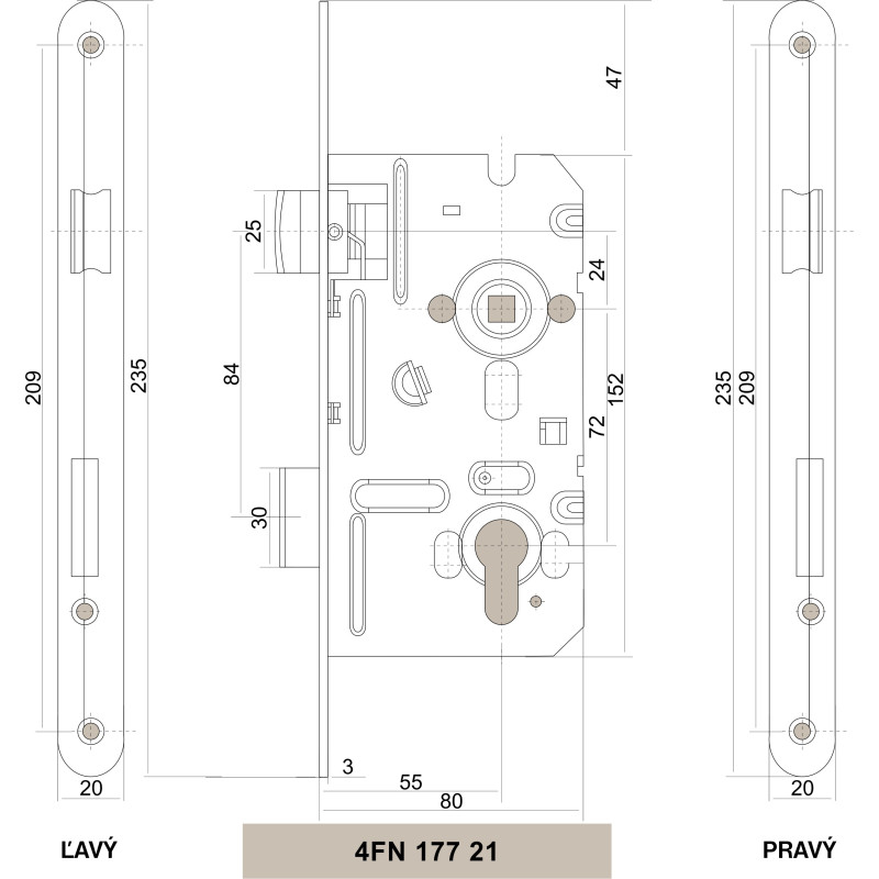 Zaklepanje za gradnjo V80/72/55 na vložek