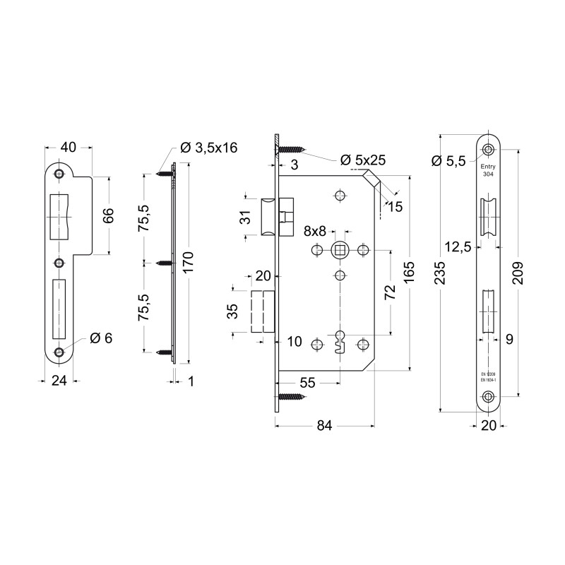 EN.304.BB.72.55.20.PL.CE vgradna ključavnica na ključ