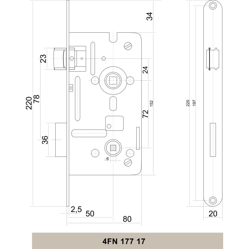- Globina vgradnje: 80 mm
