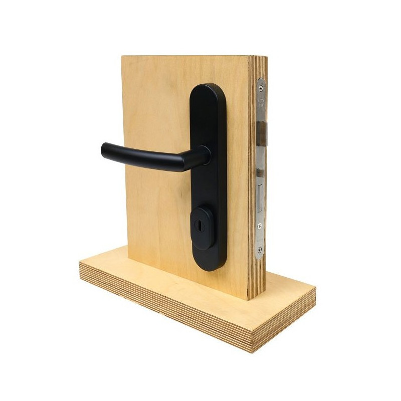 Zahvaljujoč mat črnemu premazu (CE) okovje deluje sodobno in elegantno, primerno je za družinske hiše, stanovanja, administrativne objekte ter prostore z visokimi varnostnimi zahtevami.