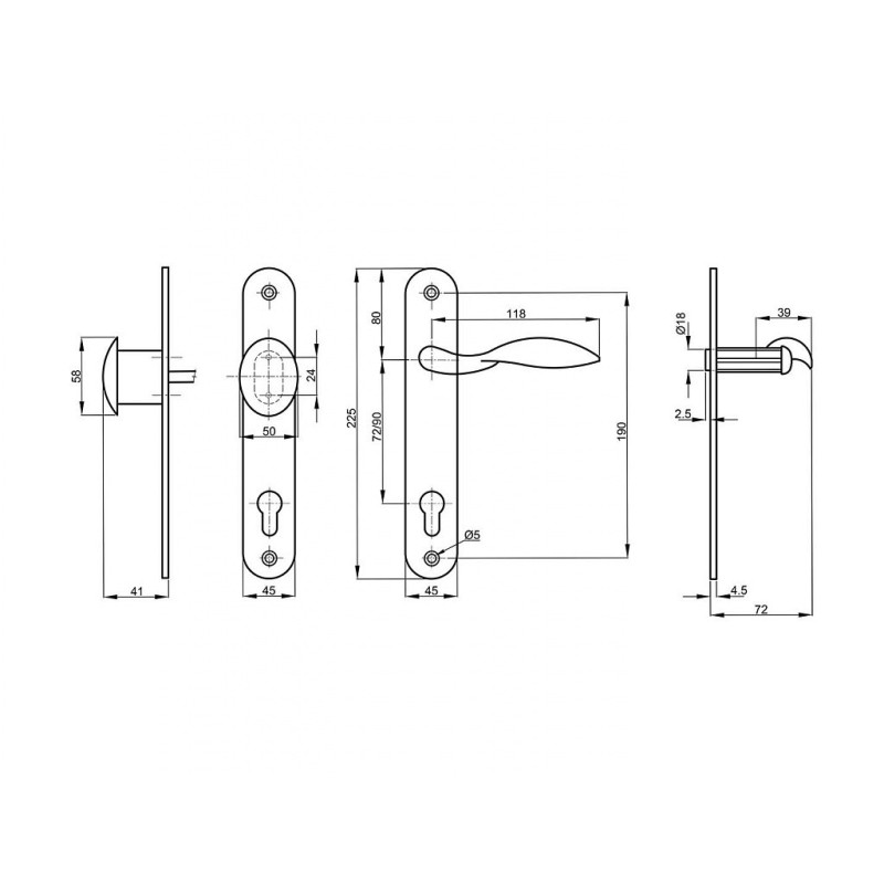 - rozměry: délka štítu 225mm, šířka štítu 44mm, rozteč montážních otvorů 190mm