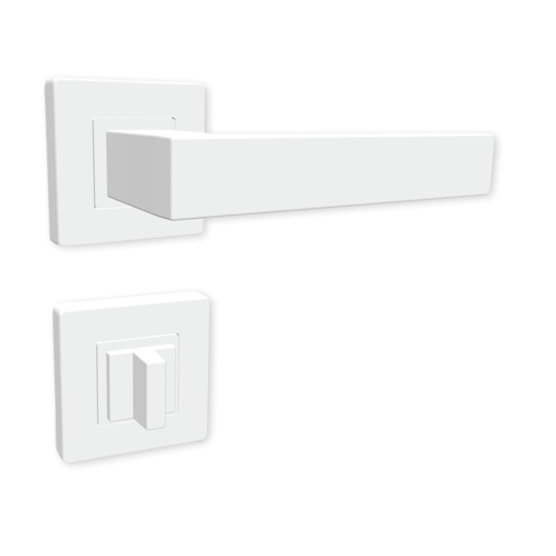 Enostavna elegantna aluminijasta kljuka, ki ima belo površinsko obdelavo. Uporabljena je trpežna bela barva. Osnovni material - aluminij omogoča uporabo ključke tudi na prostem. Tehnične značilnosti: - Embalaža vsebuje komplet za ena vrata / en par kljuk / in spodnje rozete za stranišče. - Kljuke imajo na eni strani povratno vzmet, ki pomaga pri funkciji - vračanje ključke v vodoravni položaj po pritisku. - Material kljuke: aluminij. - V embalaži je priložen potreben montažni material. - Barva kljuk: bela.