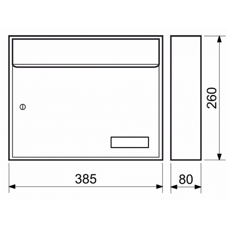 Nerjaveč nabiralnik za zunanjo uporabo. Redna oblika omogoča vgradnjo v sestave. Odlična velikost za dostavo pošte - format A4. - Nabiralnik vključuje lamelno ključavnico in 2 ključa. - Dimenzije nabiralnika: Š x V x G - 385 x 260 x 80 mm. - Dimenzije odprtine: Š x V - 340 x 33 mm. - Barva: nerjavno jeklo. **Nabiralnike vgradimo / Prosimo, preverite možnosti za montažo.**Tehnične lastnosti
