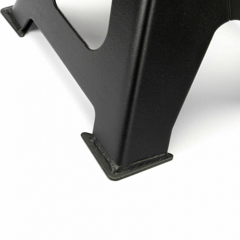Trdne stojalo izdelano iz trdne jeklene pločevine, opremljeno z zobatim mehanizmom, ki omogoča natančno nastavitev višine do 13 stopenj. Odporen izdelek z nosilnostjo 6.000 kg. Poleg tega so oblikovani s posebnimi nogami, ki se bolj tesno prilegajo tlemu, kar zagotavlja še večjo stabilnost in varnost uporabe.