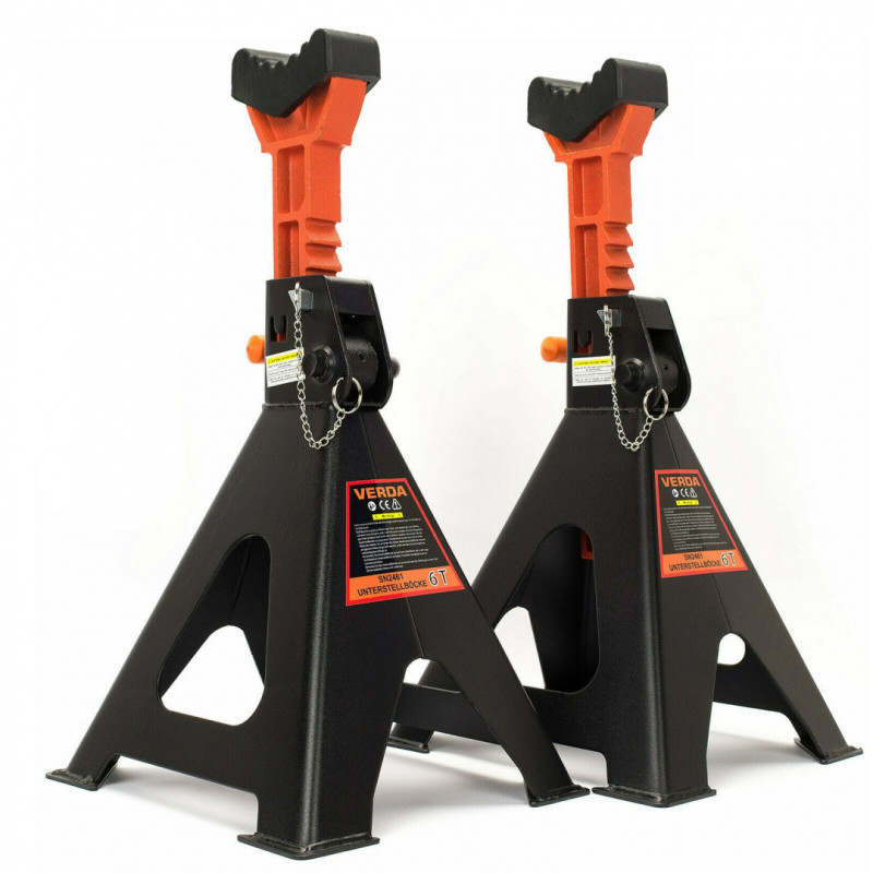 Set dveh stojal za avtomobil z nosilnostjo 6T s varnostno ključavnico in zaščitno gumo.