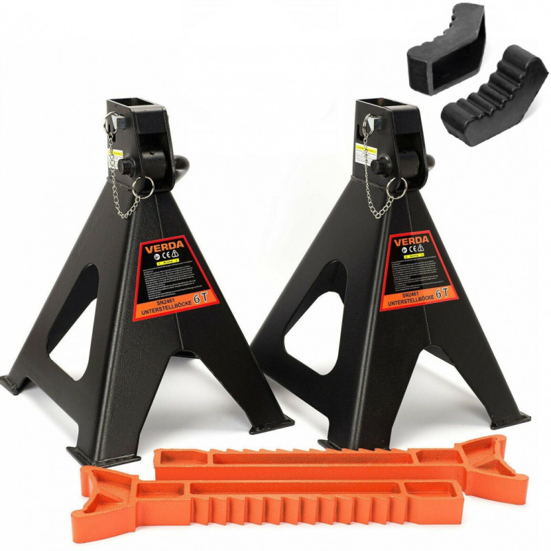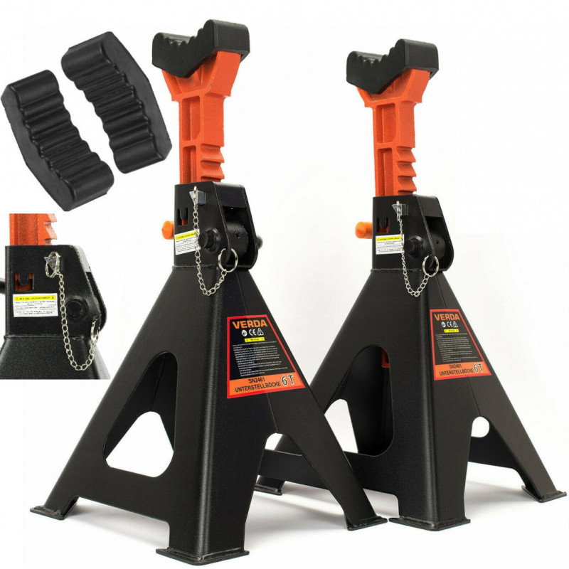 Set dveh stojal za avtomobil z nosilnostjo 6T s varnostno ključavnico in zaščitno gumo.