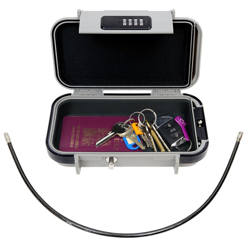 Mobilna vodoodporna varnostna škatla (depozit) iz trde plastike za shranjevanje ključev, denarja in osebnih dokumentov.