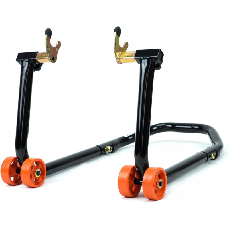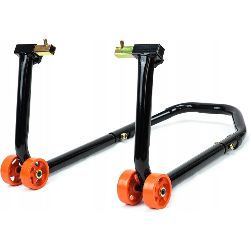 - Univerzalno stojalo za motocikel, ki ga je mogoče namestiti kot prednje ali zadnje. Za zadnje kolo so na voljo dva tipa adapterjev - pod nihajno vilico ali pod valjčki (spools).