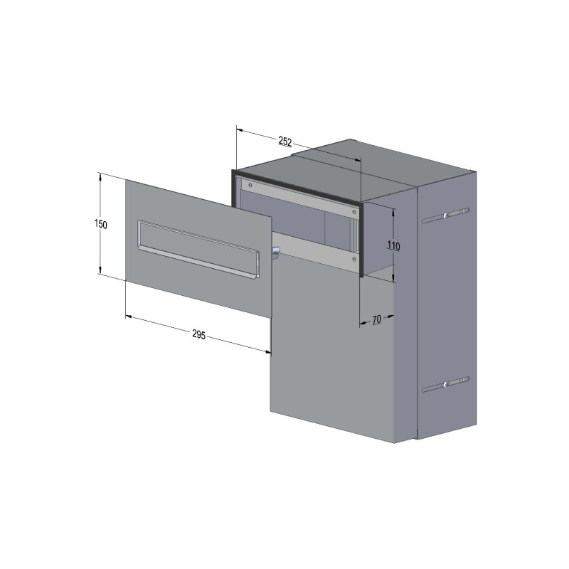 - Schránka je obojstranná, predná strana slúži na vhadzovanie pošty, zadná strana slúži na vyberanie pošty