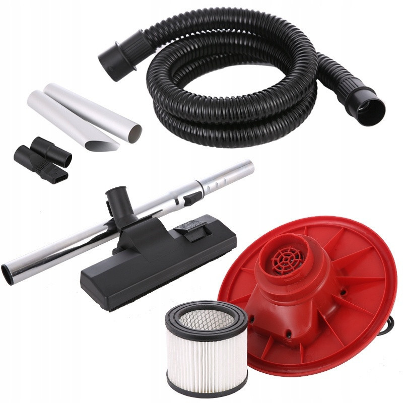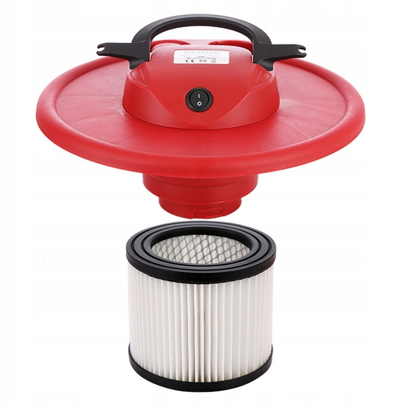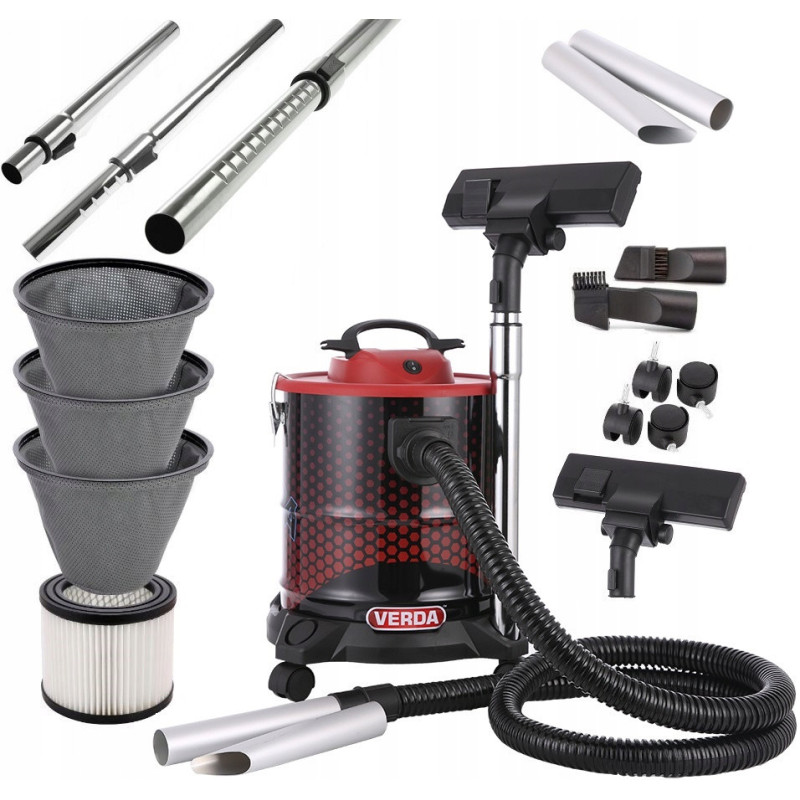 Električni sesalnik za pepel z močjo 1650W, opremljen s HEPA filtrom in tkaninskimi filtri.