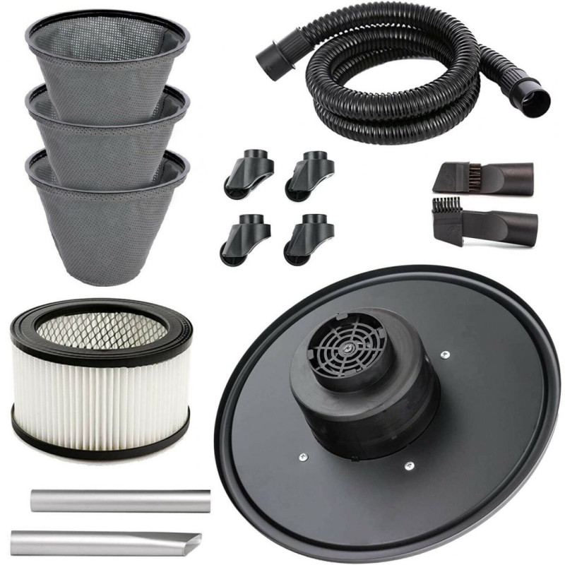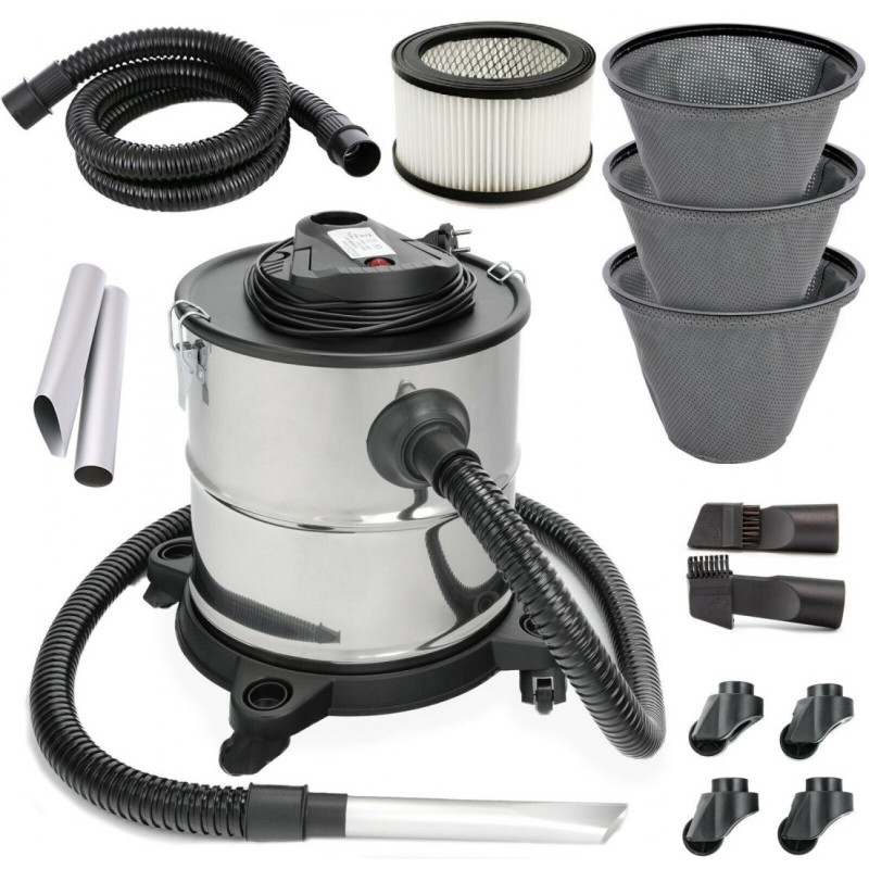 Električni sesalnik za pepel s močjo 1650 W, opremljen z HEPA filtrom in tkaninskimi filtri.