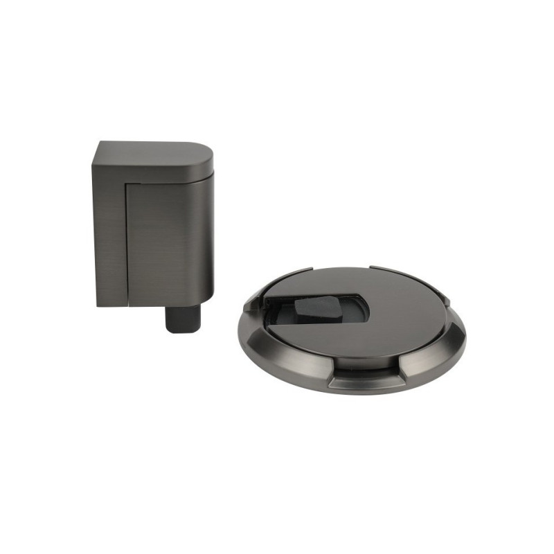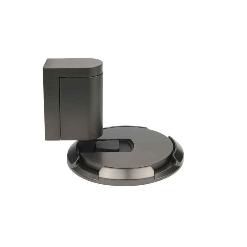 - Držalo se zaskoči z odpiranjem vratnega krila v spodnjem delu držala (nameščenega na tleh) s preklopom zunančega obroča. Ponovnim potiskom vratnega krila sprostite držalo (zunanji obroč se obrne v odprto lego).