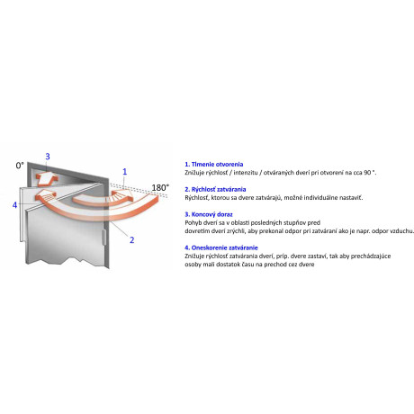 Zapirnik vrat z vrhnjo montažo iz serije TS 4000. GEZE je eden izmed najbolj priljubljenih vrhnjih zapirnikov vrat v svoji kategoriji. Zaradi visokih tehničnih parametrov in ugodne cene je TS 4000 najpogostejša izbira med profesionalci in individualnimi strankami, ki cenijo zanesljive in preverjene rešitve. GEZE GmbH je svetovno znan proizvajalec strojne opreme za vrata, okna in varnostne tehnologije z tradicijo iz leta 1863. Zapirniki vrat te družbe spadajo med najbolj znane na svetu. Osnovni parametri: - Dimenzije ohišja: 287 x 60 x 46 (d x v x š) - Nastavljiva sila zapiranja vel. 2-6 (5-7) v skladu z EN 1154 - Optični kazalnik nastavljene sile zapiranja - Nastavljiva hitrost zapiranja - Nastavljiv končni zavorec - na roki - Nastavljiv povečan upor pri odpiranju v kotu večjem od približno 85° - Avtomatsko prilagajanje temperaturnim spremembam - Učinkovitost zapiranja od 180° Aplikacija izdelka: - za vhodna vrata, - univerzalni komplet za leva ali desna vrata, - za vrata z največjo širino 1400 mm, - največja teža vrat: 120 kg, - montaža na vrata ali okvir, na stran sklepov ali na nasprotno stran od sklepov, - izdelek je odobren za uporabo na protipožarnih vratih. Komplet vsebuje: - zapirnik TS 4000 V GEZE v beli barvi, - standardna roka, - montažni predlog, - navodila, - montažne dele in vse potrebne vijake.
